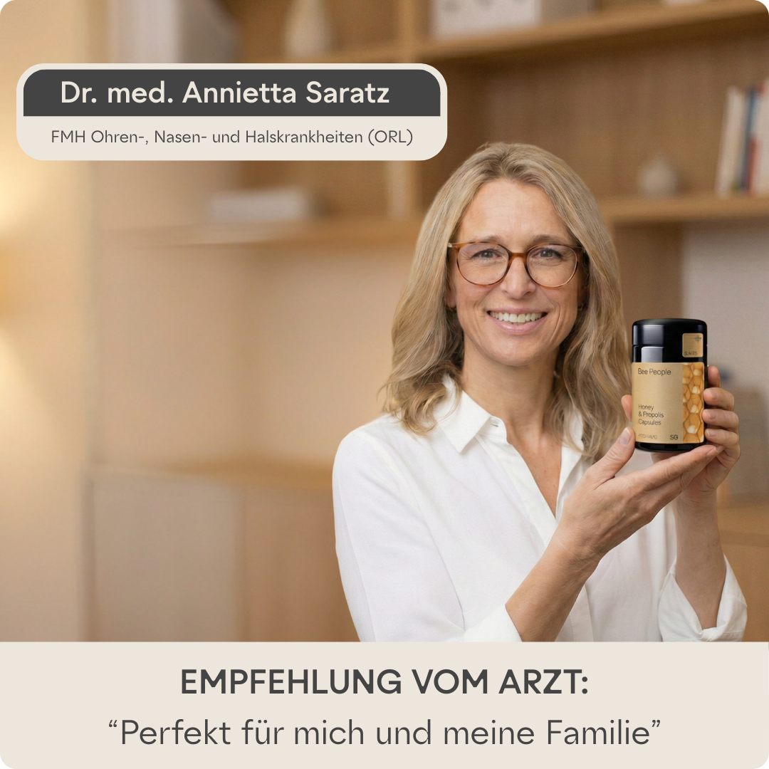 Grüezi! Wir sind Marie und Daniel, die Gründer von Bee People. Seit Jahren vertrauen wir auf die ganzheitlichen Vorteile von Honig und Propolis, um Krankheiten vorzubeugen und so unsere Gesundheit und Langlebigkeit zu verbessern. Von der Stärkung des Immunsystems bis zum Zellschutz – alle unsere Produkte werden mit einem Ziel entwickelt und streng getestet: dir zu helfen, die beste Version von dir selbst zu werden.